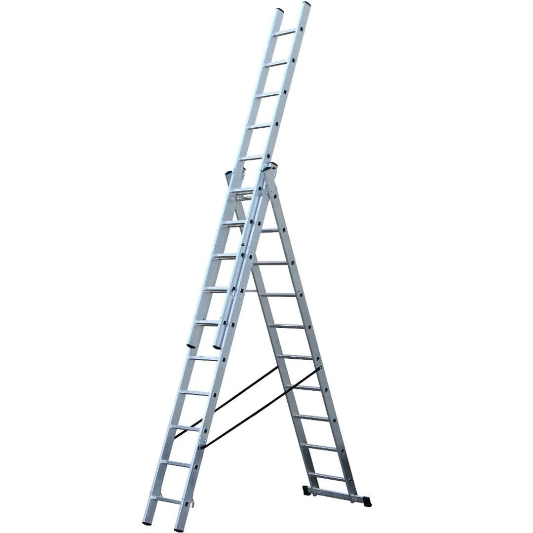 3-Way Extension Heavy Duty Combination Ladder features slip-resistant D-shaped rungs, locking bars to provide additional stability and manual thumb-operated locking catches to prevent sections separating this ladder