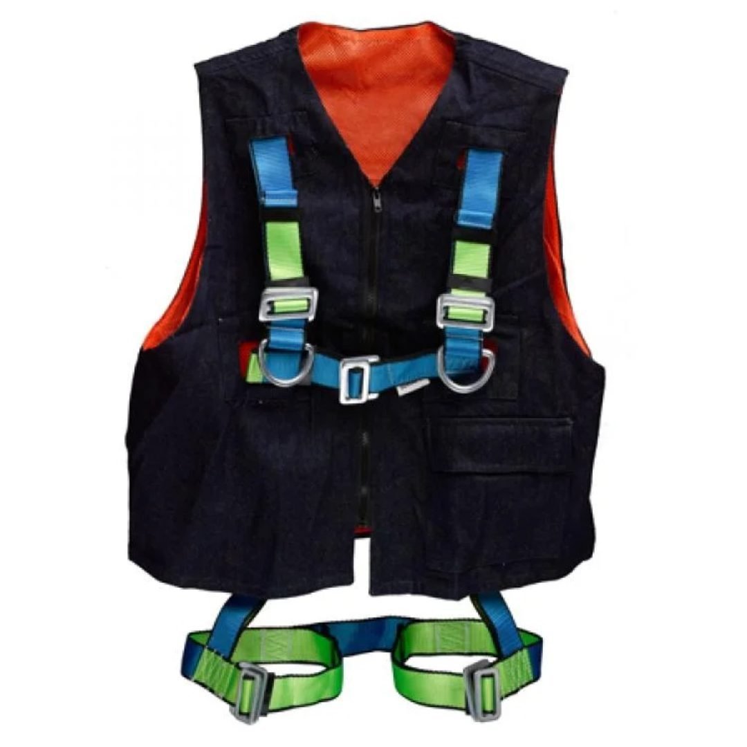 Udyogi Safety Denim Jacket Harness Designed for convenience and durability, the jacket features a built-in full-body safety harness that ensures reliable fall arrest without compromising comfort. Made from high-quality denim and reinforced with strong stitching, it is ideal for workers in construction, maintenance, and elevated job sites where protective gear and mobility are essential. The harness is discreetly integrated, allowing for a clean look while maintaining full compliance with safety standards.