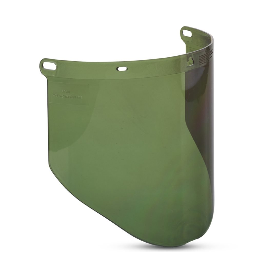 • Moulded, Polycarbonate, Green visor that extends fully to cover a wearer’s face
