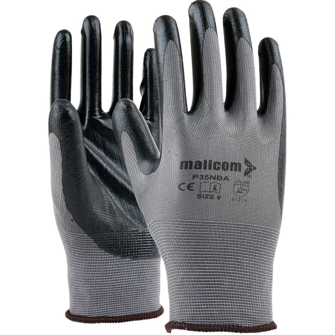 Mallcom P35NBA Nitrile Coated best-selling Nitrile Coated glove. Grey Shell with Black Nitrile Coating.