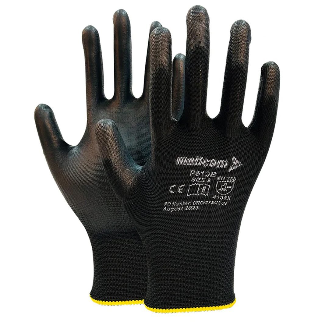 Mallcom PU Coated Black Gloves are lightweight, durable, and designed to provide excellent dexterity and protection.