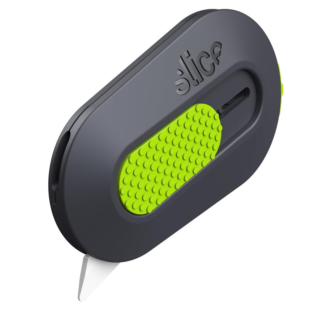 The Ceramic Blade Mini Cutter Auto Retractable works well as a safety box cutter a pocket knife or a kitchen multitool Its auto retractable blade stays out of harms way when you are not using the knife and the built in magnet keeps it handy. This small cutter ships with a replaceable 10404 rounded-tip safety blade. The Slice 10514 is ambidextrous left-handed users need only move the blade into the opposite slot in order to get cutting. The small cutter blade is non-sparking chemically inert and never rusts. As with all Slice blades, it lasts up to 11 times longer than steel Ceramic Blade Mini Cutter Auto Retractable.