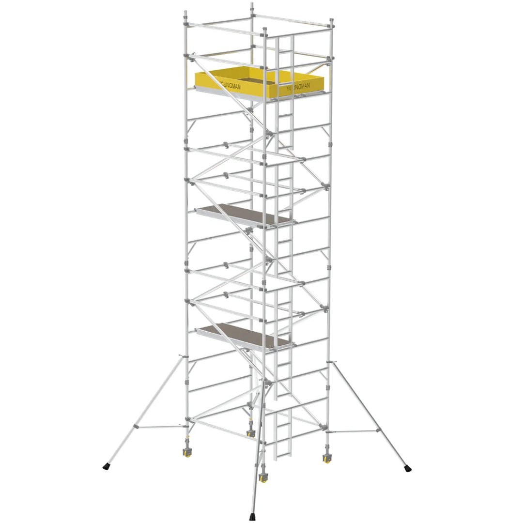 Light Weight Heavy Duty Aluminum Access Scaffold Towers – XO range of products by Youngman India is one of the safest scaffold towers available in the market today. Its lightweight and heavy-duty tower design with a capacity of 275 kg per platform and 950 kg per tower allows it to withstand heavy loads and harsh weather conditions.