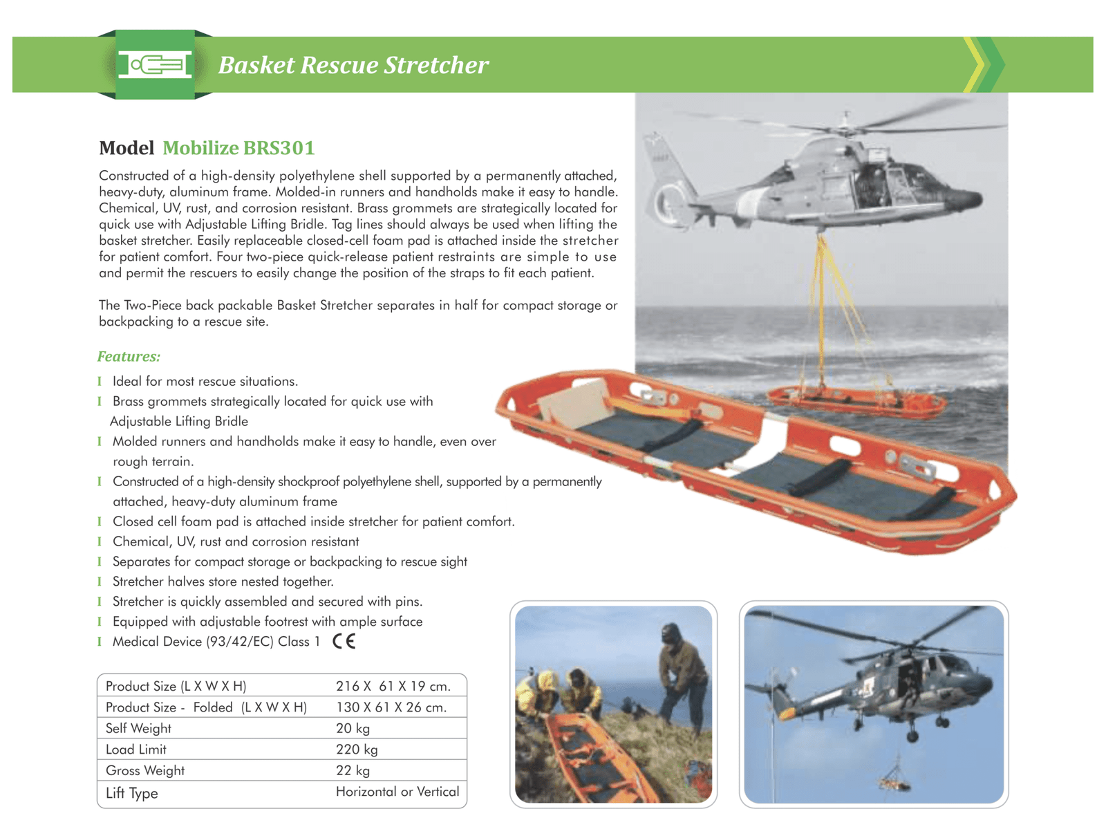 • Mobilize BRS 301 Basket Rescue Stretcher Constructed of a high-density polyethylene