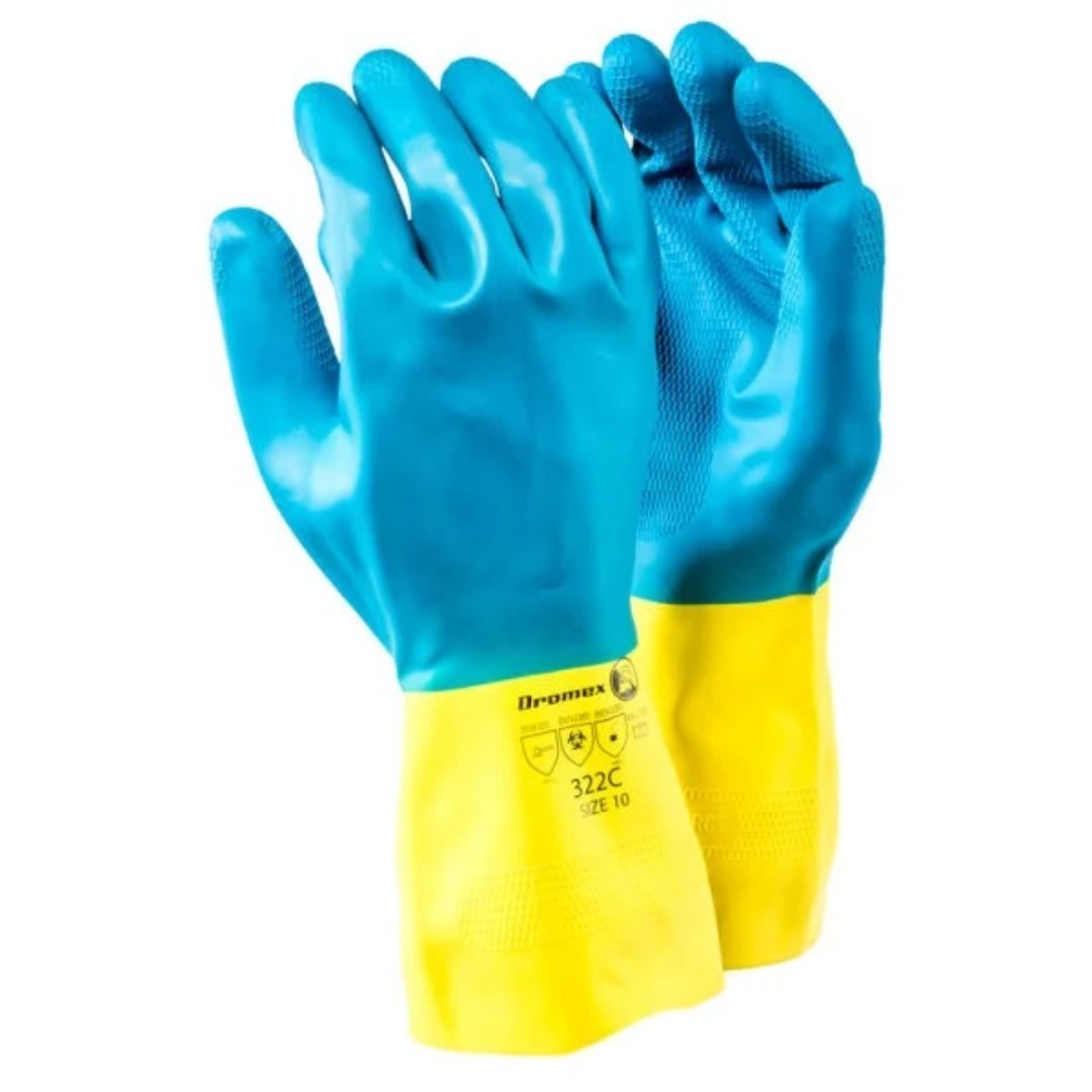 Ideal for industrial, laboratory, and cleaning applications, these gloves provide a secure grip, flexibility, and long-lasting durability. The neoprene blend ensures they stay comfortable even during extended use, while the textured surface enhances grip in both wet and dry conditions Neoprene Blended Bi-colour Gloves.
