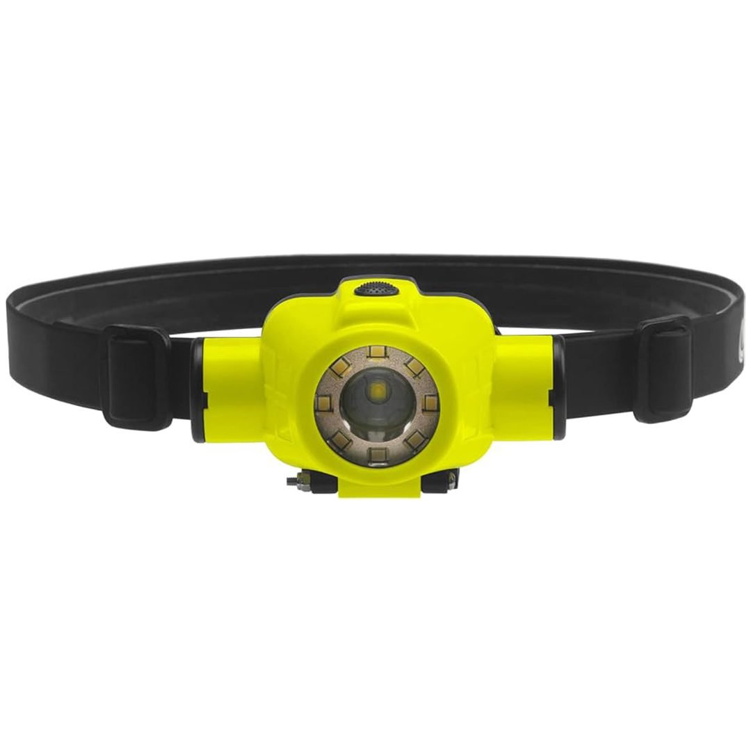 Nightstick XPR 5553G Rechargeable Intrinsically Safe Dual-Light 3M™ Dual Lock™ reclosable fasteners, and a heavy-duty rubber head strap for use on a hard hat.