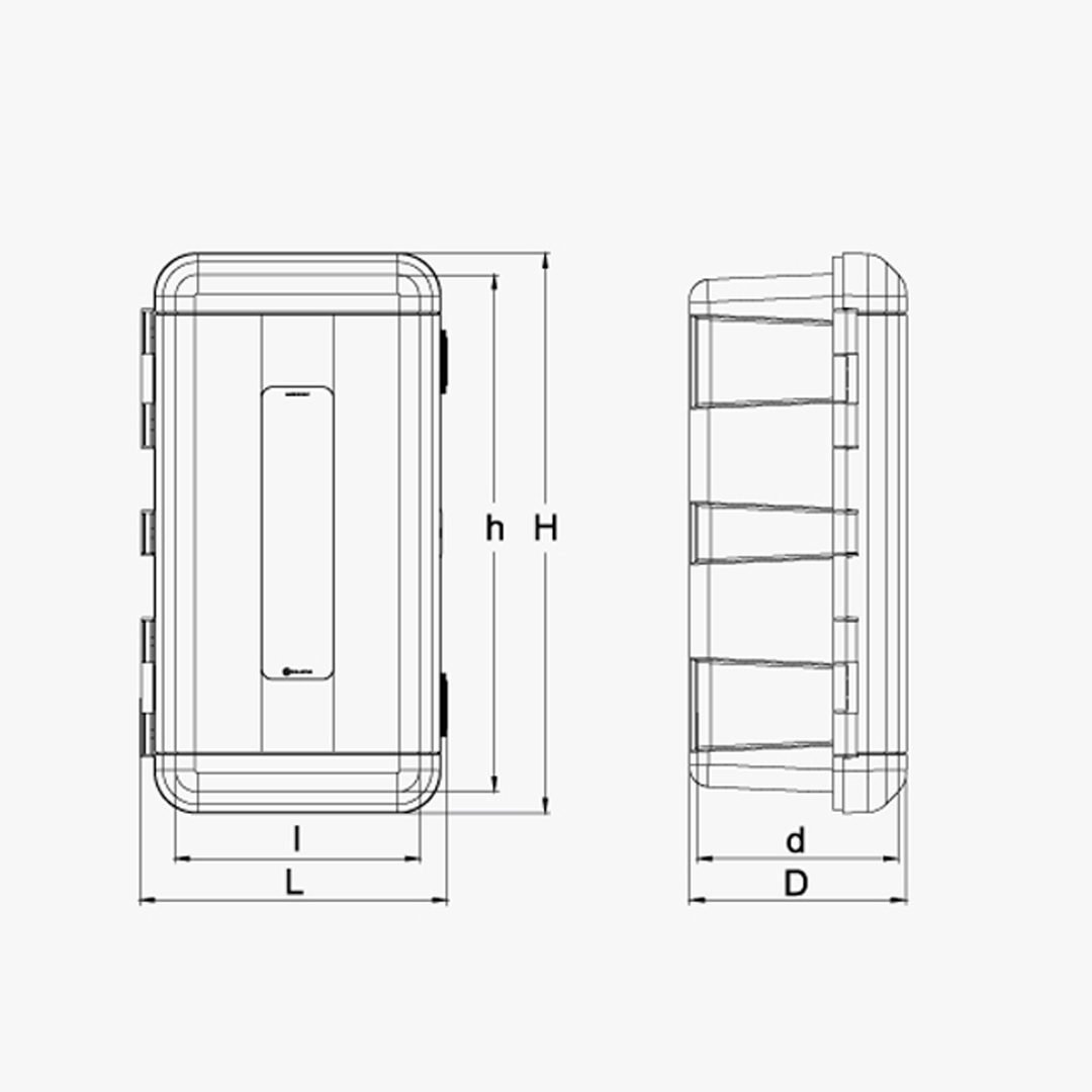 - Plastic material with high resistance to: flammability, water and dust ingress, fuel and lubricating oil, UV rays, high and low temperatures.