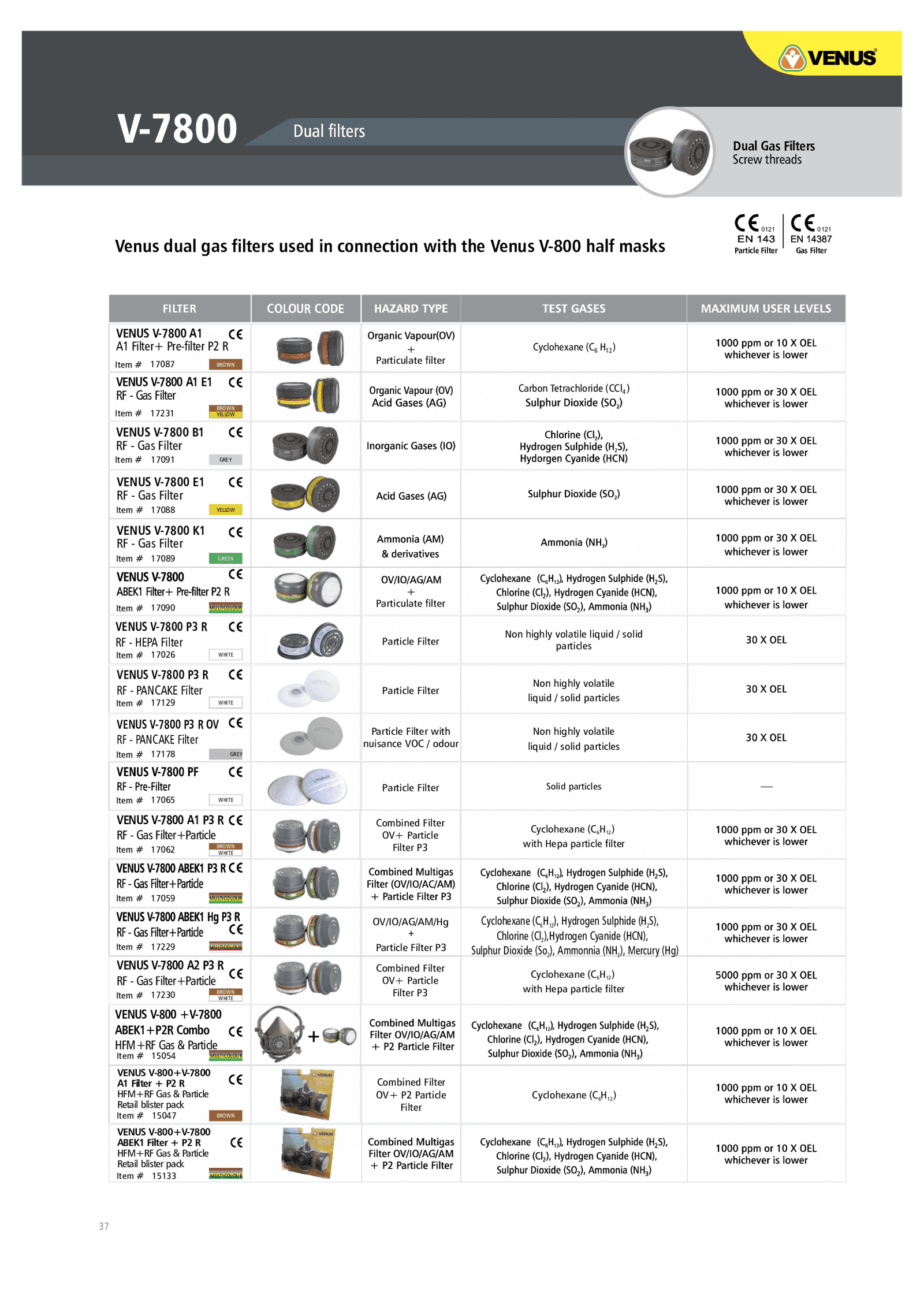 VENUS V-7800 K1 Filter we understand the best quality range of Venus V7800 Filter which is used for protection against chemicals and Multi gases.